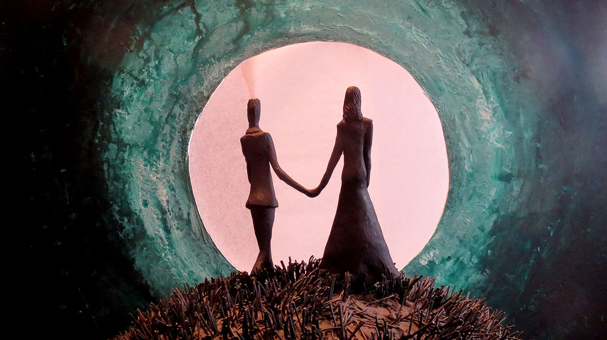 Save the Date card sent out for my wedding. It is a composit of different sculpted parts of the illustration.